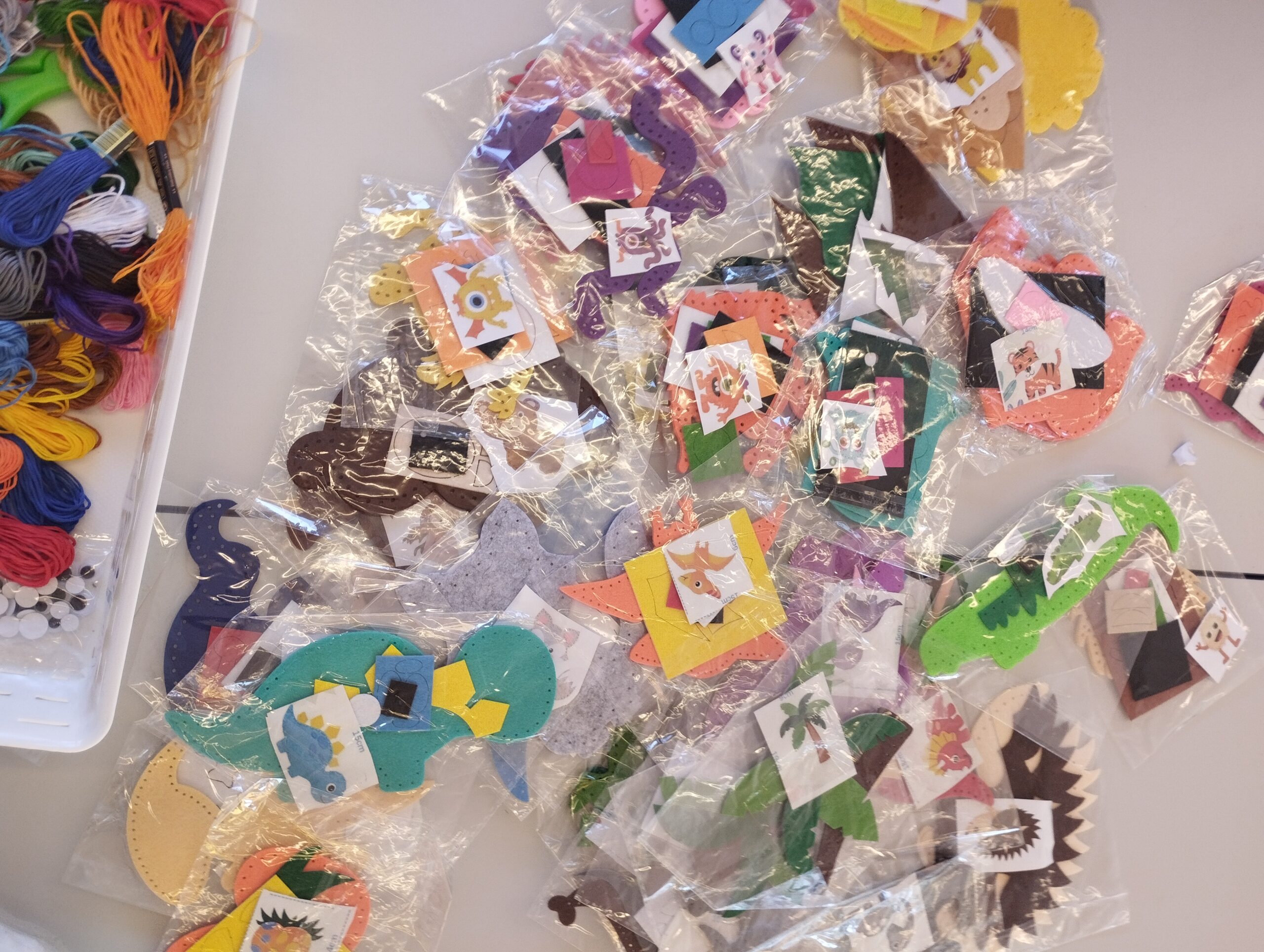 Mit Kindersicheren Nadeln und Schablonen, konnten die Kinder sich kleine Figuren basteln.